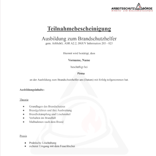 Ausbildung zum Brandschutzhelfer (Dauer: 2-3 Stunden)
